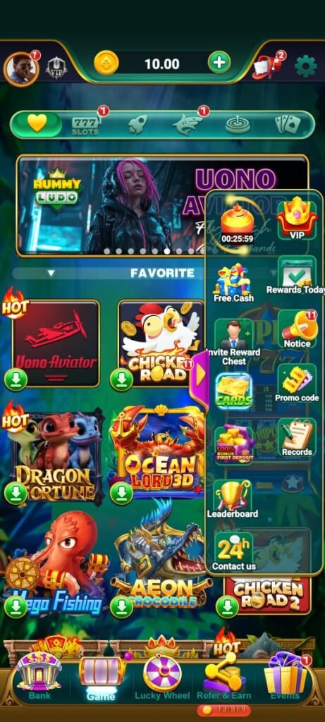 In this you get all types of games like Rummy chicken roads, Aviator fishing, you get many More games in one app.